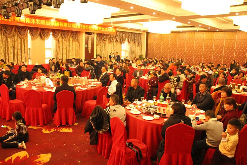 農(nóng)歷臘月二十六,信陽中樂百花酒店三樓的百花廳流光溢彩、賓朋滿座,在2018年新年到來之際,永和集團在中樂百花酒店舉辦了新春團拜會暨表彰大會,永和集團及所屬子公司的全體員工攜家屬及合作商出席了團拜會。